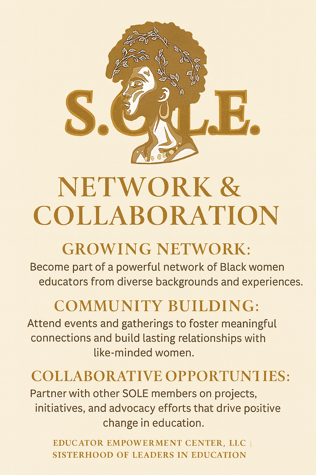 Welcome to the Sisterhood of Leaders in Education (S.O.L.E.), a vibrant and empowering community exclusively for Black women who are shaping the future of education. We are a collective force, united in our commitment to uplifting and amplifying the voices of Black women leaders.